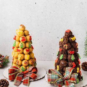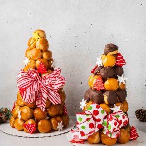 Croquembouche normal y mixto caramelo y chocolate con salsa de chocolate